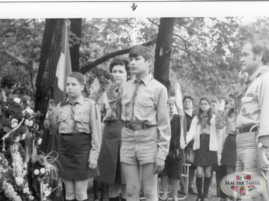 Elől Ábrahám Cili és Lengyel Bábi, jobb oldalon Pigniczky László cserkésztiszt